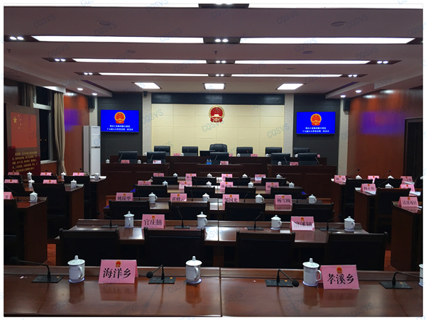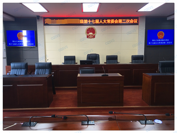 此次我司有幸為重慶某縣搭建人大會議室智能會議系統(tǒng)工程。整個工程涵蓋三個部分:顯示系統(tǒng)、會議系統(tǒng)以及擴聲系統(tǒng)。顯示系統(tǒng)由三臺液晶大屏展示:正前方左右各一臺55寸顯示屏,正后方一臺60寸顯示屏,畫質(zhì)清晰,機身輕薄,外觀時尚;會議系統(tǒng)則主要采用SVS嵌入式帶表決跟蹤簽到會議話筒,主席話筒具有強制切斷代表單元發(fā)言的優(yōu)先功能,單元話筒具有發(fā)言單鍵與指示燈,可自由控制發(fā)言狀態(tài),開機講話時,紅色燈環(huán)同時發(fā)光,指示出正在發(fā)言人的位置。再結(jié)合SVS會議音響,共同打造美觀大方的智能化會議室。該會議室工程已成為人大會議室系列的一個標榜工程,迎接了眾多用戶的參觀,都得到了一致好評!