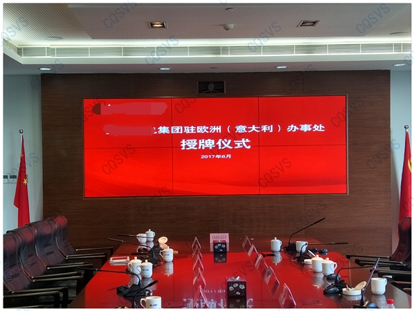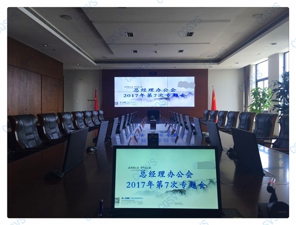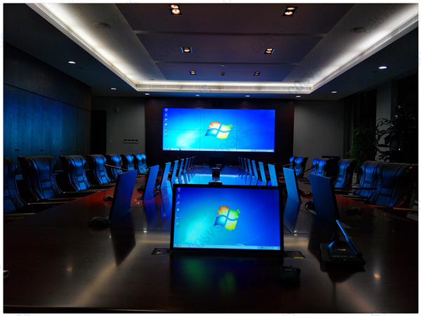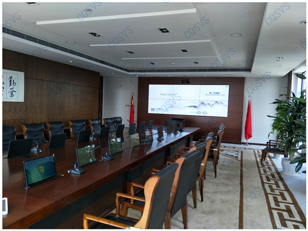 此次我司有幸為某集團公司打造智能會議室項目。該公司領(lǐng)導(dǎo)前期到我司考察后,對我司團隊的整體運營能力比較滿意,通過在前期方案設(shè)計中的不斷溝通,最終確定采用拼接顯示和無紙化會議系統(tǒng)來打造智能化會議室。拼接顯示系統(tǒng)主要采用的是LG原裝47寸2X3拼接,無紙化會議系統(tǒng)則采用SVS液晶升降器來實現(xiàn)。