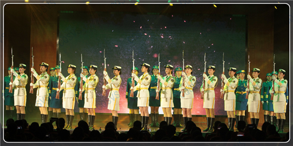 晚會(huì)現(xiàn)場(chǎng):晚會(huì)由開(kāi)場(chǎng)節(jié)目《致敬國(guó)旗》引出,隨后西南大學(xué)主要領(lǐng)導(dǎo)宣讀國(guó)旗班新一屆隊(duì)員名單,新老隊(duì)員同唱國(guó)旗班班歌,接下來(lái)進(jìn)行歷屆老隊(duì)員、國(guó)防生、國(guó)防生代表、榮昌校區(qū)國(guó)班、西南大學(xué)各學(xué)院等師生進(jìn)行文藝演出,獻(xiàn)禮西南大學(xué)學(xué)生女子國(guó)旗班成立十周年。