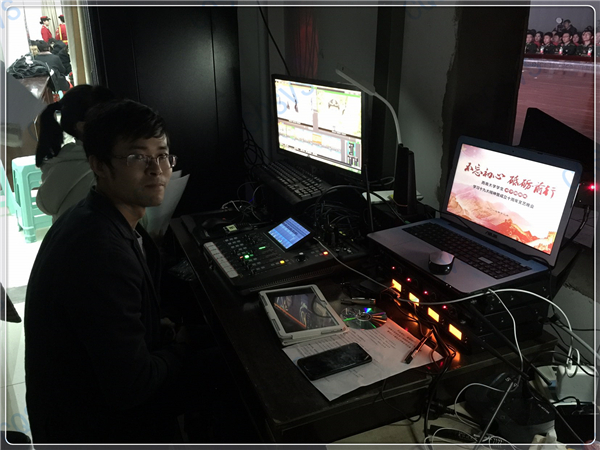 迅控保障:項(xiàng)目的順利驗(yàn)收并沒(méi)有讓工程部團(tuán)隊(duì)有任何松懈,晚會(huì)的圓滿舉辦才是最終的考驗(yàn)。此次文藝晚會(huì)校方給予了高度重視,為了保障整個(gè)文藝演出的順利進(jìn)行,在夏總工程師的帶領(lǐng)下,工程部小伙伴們?cè)缭鐏?lái)到現(xiàn)場(chǎng)對(duì)各個(gè)設(shè)備進(jìn)行檢測(cè)調(diào)試并堅(jiān)守到晚會(huì)最后一刻,確保萬(wàn)無(wú)一失。