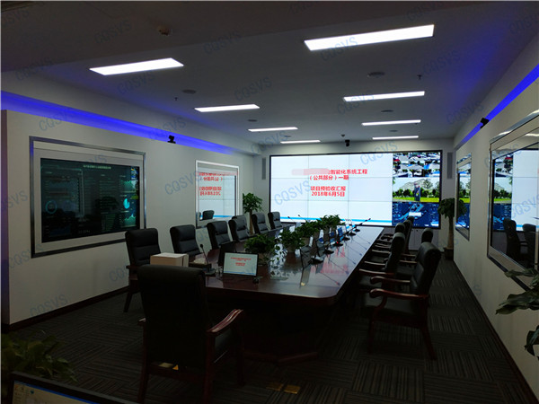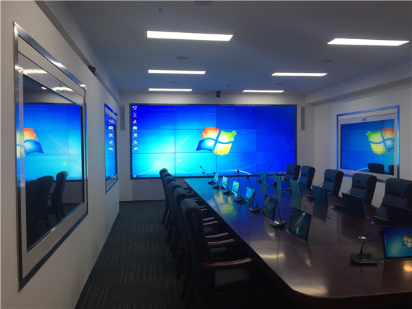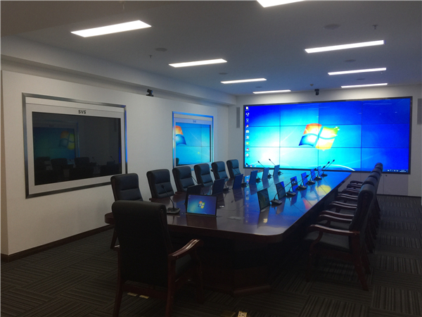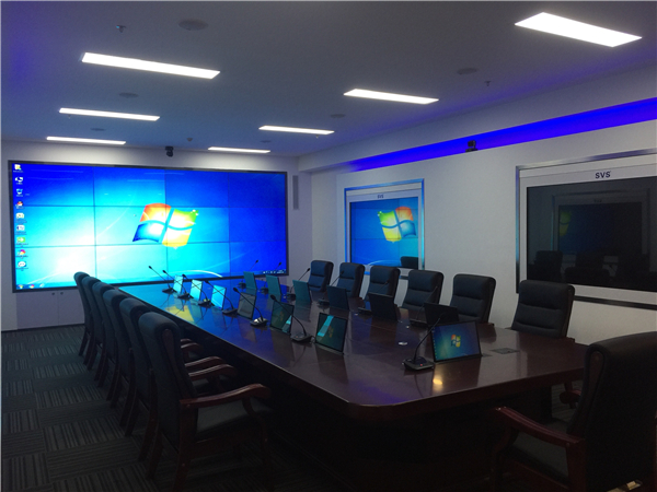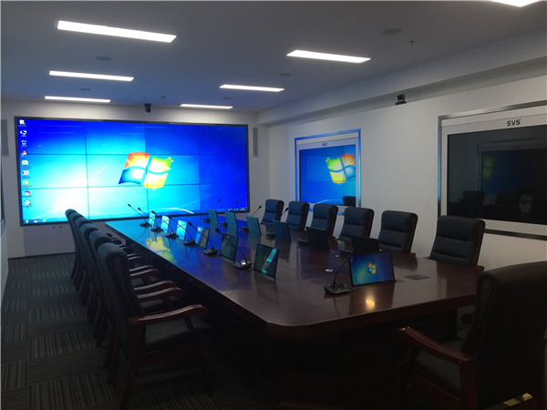 此次我司有幸參與重慶市某智慧城市智能化系統(tǒng)建設(shè)項(xiàng)目,經(jīng)過現(xiàn)場考察反復(fù)溝通后確定采用顯示系統(tǒng)和會議系統(tǒng)相結(jié)合的方式打造智慧城市智能化會議工程。其中顯示系統(tǒng)用LG 55寸1.8mm通過3X5拼接的方式實(shí)現(xiàn)大屏拼接顯示,兩側(cè)則采用了SVS透明屏通過嵌入式方式進(jìn)行安裝,實(shí)現(xiàn)美觀大方的大屏可視系統(tǒng)。會議系統(tǒng)采用SVS液晶升降器和OLED時(shí)鐘會議話筒實(shí)現(xiàn)無紙化會議系統(tǒng),實(shí)現(xiàn)高效節(jié)能的會議模式。