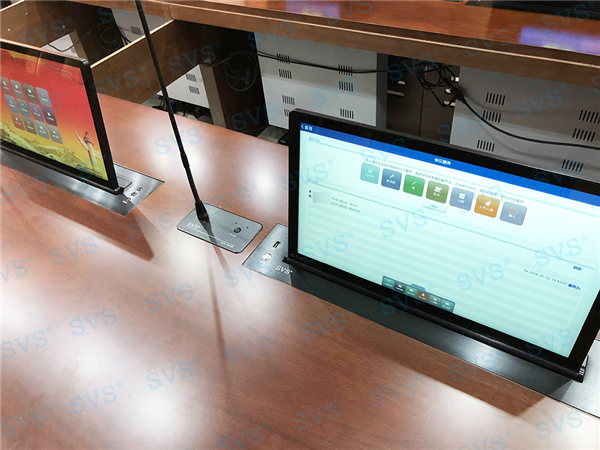 并為客戶推薦使用雙屏升降器SV-LCD17TD,輕松實現(xiàn)普通會議、無紙化會議、多媒體會議等多種會議模式的切換。