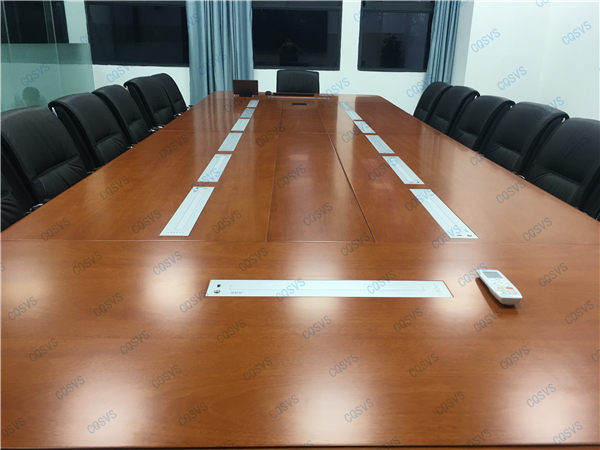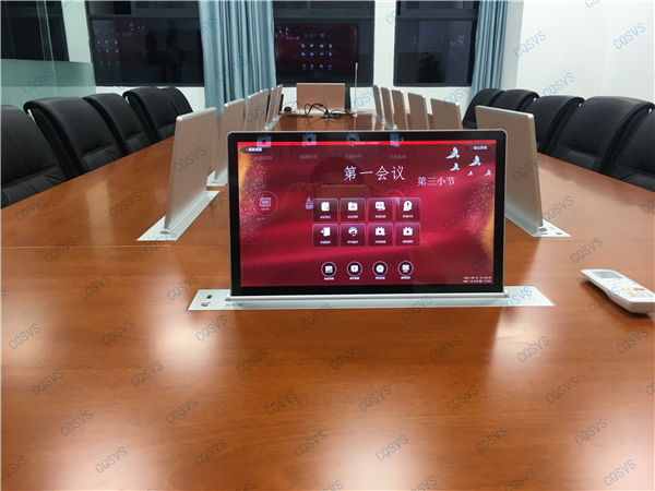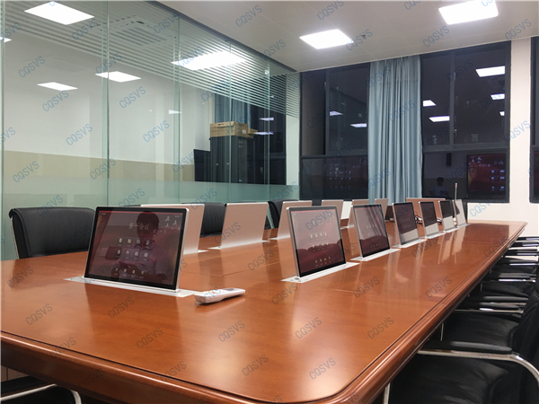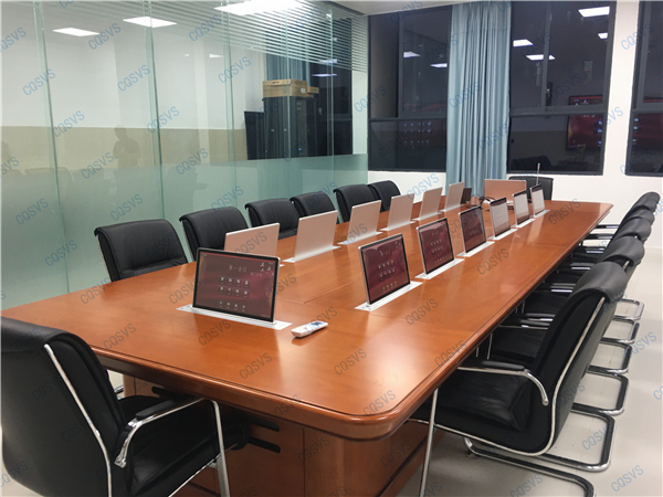 近期,重慶迅控電子科技有限公司為某高校打造無紙化會(huì)議室,根據(jù)會(huì)場(chǎng)實(shí)際情況以及用戶需求提供了一套智能無紙化會(huì)議室解決方案。會(huì)場(chǎng)主席位采用 SV-LCD17(TS)帶話筒液晶升降器;其他13個(gè)參會(huì)端采用液晶屏升降器SV-LCD17(T),產(chǎn)品標(biāo)配內(nèi)嵌式17.3英寸全高清電容觸摸屏,支持10點(diǎn)觸摸,即插即用,顯示屏支持0-30°后仰調(diào)節(jié),支持自動(dòng)復(fù)位。該產(chǎn)品是新時(shí)代無紙化會(huì)議或者視頻會(huì)議室的主流產(chǎn)品,配合無紙化軟件,可以實(shí)現(xiàn)眾多會(huì)議功能,是與會(huì)人員之間信息化交互的重要工具。
