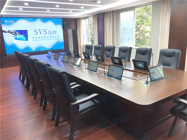 近日SVS助力某檢察院打造無(wú)紙化會(huì)議室工程,會(huì)場(chǎng)共設(shè)13個(gè)席位,為每個(gè)席位配置帶話筒雙屏升降器SV-LCD17(A1/B1),屏機(jī)聯(lián)體,主副雙面屏顯示、發(fā)言麥克風(fēng)結(jié)構(gòu)一體化設(shè)計(jì);顯示屏和發(fā)言麥克風(fēng)均可獨(dú)立電動(dòng)升降。配合無(wú)紙化會(huì)議系統(tǒng),實(shí)現(xiàn)眾多會(huì)議功能,硬件和軟件相互結(jié)合,輕松提高會(huì)議效率,既保留了原有會(huì)議的簡(jiǎn)潔,也擴(kuò)展了時(shí)下高效科學(xué)的無(wú)紙化會(huì)議模式,讓會(huì)議更加的多元高效。