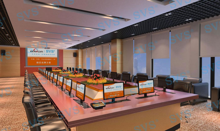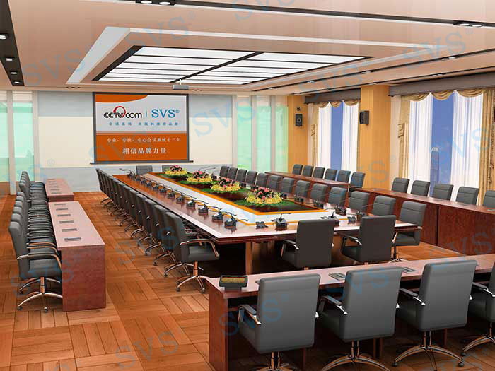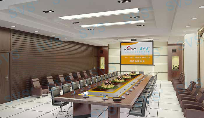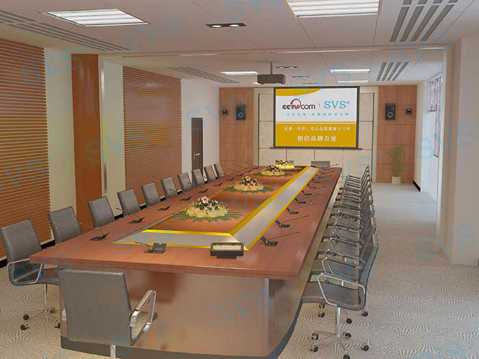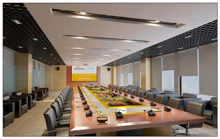 系統(tǒng)闡述: 顯示部分: 會議顯示使用120寸電動幕布,方便隱藏不影響整體美觀度,一鍵聯(lián)動功能讓會議更智能化。以及每一位與會人員配置19寸多媒體液晶顯示器,更加方便相互間信息共享交流,隱藏式安裝,桌面更加整潔、大方。 擴聲部分: 采用4只12寸全頻音箱作為主擴聲,完美的聲音表現(xiàn)技術(shù),獨有中頻人聲還原技術(shù),可避免聽覺上疲勞。匹配4通道功率放大技術(shù),讓聲音表現(xiàn)更加靈活,先進的降噪處理技術(shù)可有效避免各類環(huán)境所產(chǎn)生的聲音干擾,具備雙保險可有效保護設(shè)備使用壽命。 會議部分: 會議采用純數(shù)字保密通訊方式,采