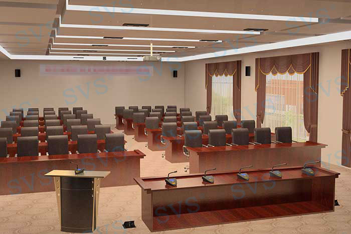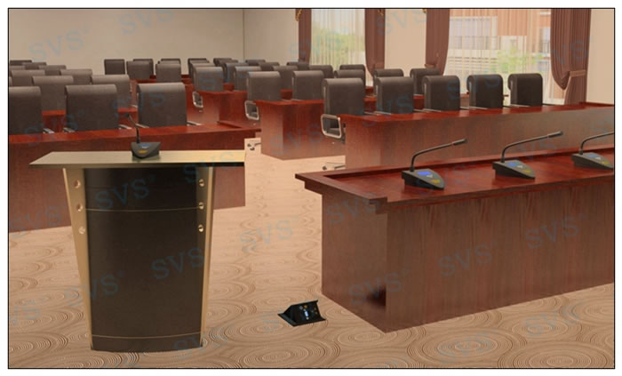 會議系統(tǒng)采用桌面式無線會議話筒,心型指向麥克風(fēng),有效的提高聲音采集靈敏度和杜絕各類電磁環(huán)境的干擾。話筒單元控制器的使用可有效地保護音箱因高頻嘯叫導(dǎo)致的故障,營造更加輕松的會議發(fā)言環(huán)境。實用于各類簡單、桌面整潔、少布線的會議場所。