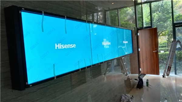 重慶迅控電子科技有限公司作為專業(yè)音視頻系統(tǒng)集成方案提供商,在創(chuàng)意顯示方面積極創(chuàng)新,形成了自己獨特的設(shè)計方案。此次為重慶市某大數(shù)據(jù)產(chǎn)業(yè)基地打造形象墻項目,采用3臺55寸海信液晶拼接屏通過豎拼1X3的方式,外加紅外觸摸框進行實施。