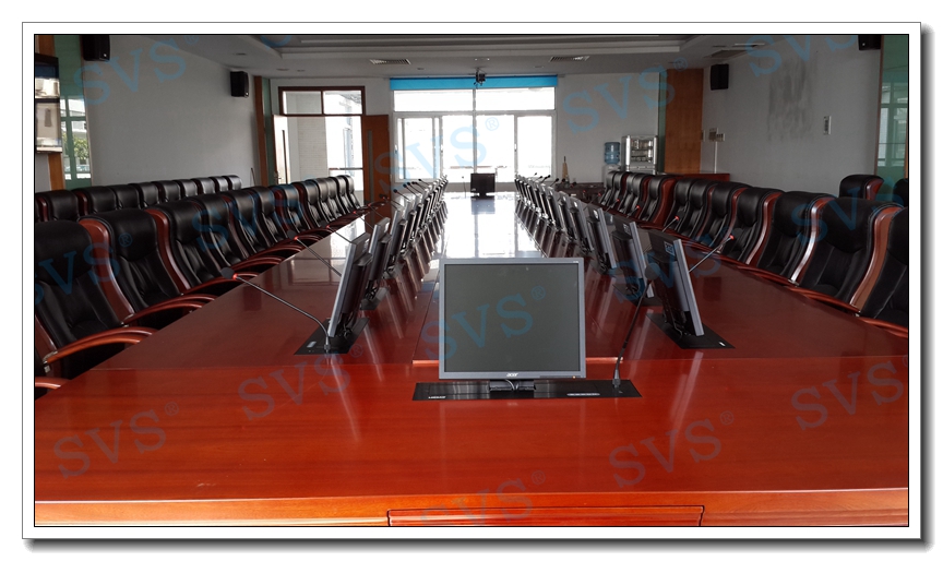 在無紙化會議室越來越普遍的今天,越來的越多的公司或部門會選擇這種不單綠色環(huán)保,還可以很大力度的提升會議工作效率的會議室產(chǎn)品布局模式。無紙化會議系統(tǒng)是使用現(xiàn)代通訊技術(shù)、音頻技術(shù)、視頻技術(shù)、軟件技術(shù),通過文件的電子交換實現(xiàn)會議的無紙化。其特征是:文件傳輸網(wǎng)絡(luò)化,文件顯示電子化,文件編輯智能化,文件輸入輸出可控化。無紙化會議系統(tǒng)的一個基本特征是:會議室設(shè)有公共視頻顯示的大屏幕和每個席位單獨控制和使用的席位顯示器,選擇席位顯示或稱異步顯示時,由與會者自行操作該智能終端,此時,該智能終端如同一臺獨立使用的標準計算機,每個參會者可以自主地在顯示公共信號的同步顯示或異步顯示之間一鍵切換。SVS在無紙化會議模式剛剛出現(xiàn)時,就敏銳的把握到這一發(fā)展趨勢,從而對無紙化會議進行了深入的研究和產(chǎn)品測試開發(fā),到現(xiàn)在,已經(jīng)是國內(nèi)無紙化會議系統(tǒng)的領(lǐng)軍企業(yè)。此次SVS為廣東省佛山市某局打造一個無紙化會議室,在通過中央控制系統(tǒng)、桌面顯示顯示隱藏系統(tǒng)、數(shù)字發(fā)言會議系統(tǒng)、專業(yè)會議擴聲系統(tǒng)多系統(tǒng)的結(jié)合達到無紙化會議的基本要求后,更通過對每個系統(tǒng)產(chǎn)品的精確選擇,讓會場會議效果更加優(yōu)質(zhì),并通過觸摸屏控制系統(tǒng),讓與會者輕松實現(xiàn)對整個會場全部多媒體設(shè)備的人性化、個性化的定制控制,專業(yè)的產(chǎn)品和技術(shù),得到客戶的高度評價。
