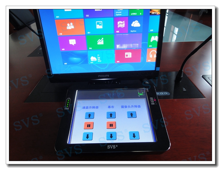 此次SVS為某建設(shè)集團安徽公司打造一個無紙化會議室,根據(jù)客戶要求采用桌面隱藏式帶發(fā)言顯示單元和攝像頭升降系統(tǒng),在保證數(shù)字化高保真發(fā)言效果的前提下,讓整個會場更加的整潔美觀,完整的打造出一個高品質(zhì)的無紙化數(shù)字會議室。實現(xiàn)功能:根據(jù)會場需要升降跟蹤攝像頭,實現(xiàn)會場智能發(fā)言跟蹤桌面顯示器根據(jù)需要實現(xiàn)同步及異步升降顯示會場大屏幕實現(xiàn)高清數(shù)字信號與普清信號的接入及顯示會場實現(xiàn)有線發(fā)言和無線發(fā)言雙模式配合拾音會場通過無線觸摸屏實現(xiàn)全智能人性化無線控制