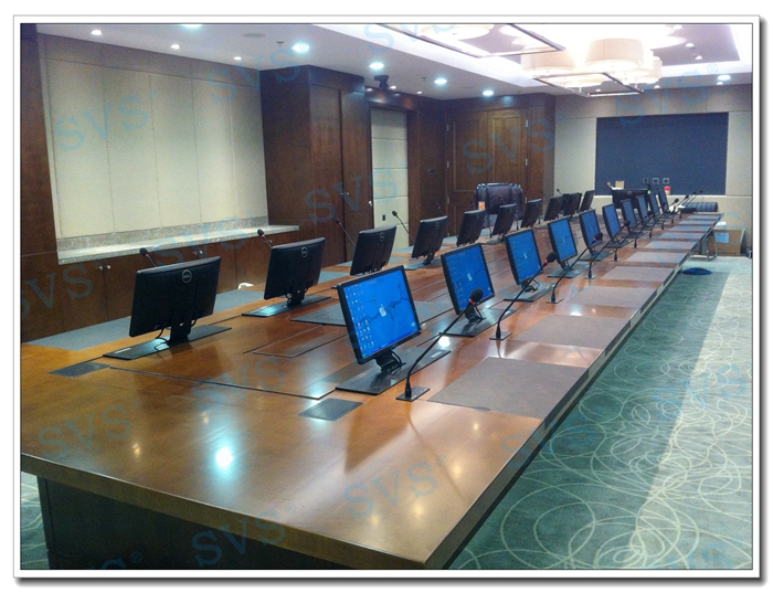 實(shí)現(xiàn)功能:會場21個桌面顯示器升降系統(tǒng),同步及異步升降控制,顯示信號同步及異步顯示會場21個發(fā)言位高品質(zhì)數(shù)字發(fā)言支持會場靈活無線發(fā)言會場實(shí)現(xiàn)會議發(fā)言實(shí)時跟蹤實(shí)現(xiàn)多點(diǎn)遠(yuǎn)程視頻會議功能實(shí)現(xiàn)投影機(jī)智能開關(guān)機(jī)、自動電源保護(hù)、多路信號顯示管理會場信息盒系統(tǒng)實(shí)現(xiàn)現(xiàn)場多路外接信號靈活切入系統(tǒng)實(shí)現(xiàn)會場設(shè)備電源管理根據(jù)客戶需要定制觸摸屏控制界面,實(shí)現(xiàn)會場的聲、光、電智能控制