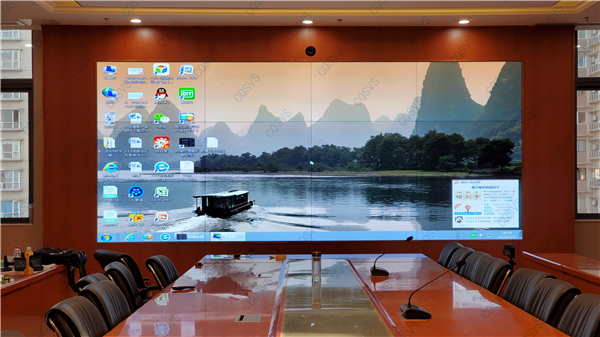 本次重慶迅控電子科技有限公司為中鐵某局會議室打造大屏顯示系統(tǒng),采用LG 原裝55寸0.88mm拼縫液晶拼接屏通過3X4拼接進行實施。