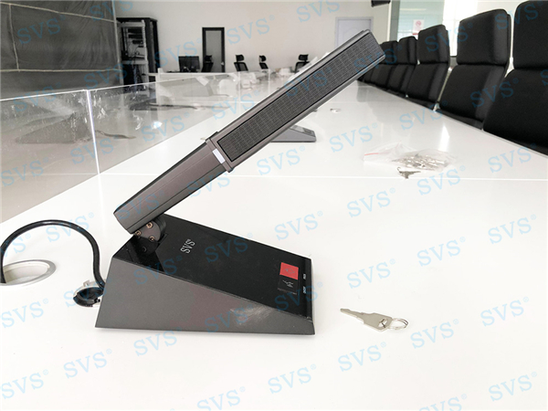 一:多功能指揮室:根據(jù)客戶的需求,多功能指揮室使用可移動(dòng)式時(shí)鐘會(huì)議發(fā)言單元SV-MT338A/B,該產(chǎn)品是新時(shí)代會(huì)議行業(yè)里不可多得的創(chuàng)新型新品。單元具有新型的OLED顯示大屏,程序化顯示時(shí)鐘、發(fā)言計(jì)時(shí)、倒計(jì)時(shí)等內(nèi)容,讓會(huì)議更加高效、高質(zhì)量完成;配合數(shù)字處理電路,展現(xiàn)高保真、高靈敏度、遠(yuǎn)距離發(fā)言效果;組建系統(tǒng)簡單,使用方便,功能強(qiáng)大,效果一流,適用于高要求、固定多位置需要發(fā)言的會(huì)議場(chǎng)所。