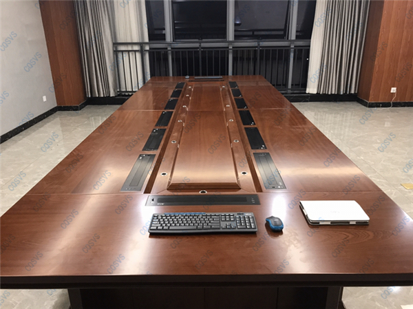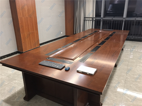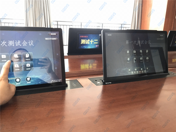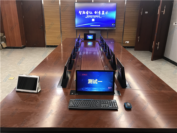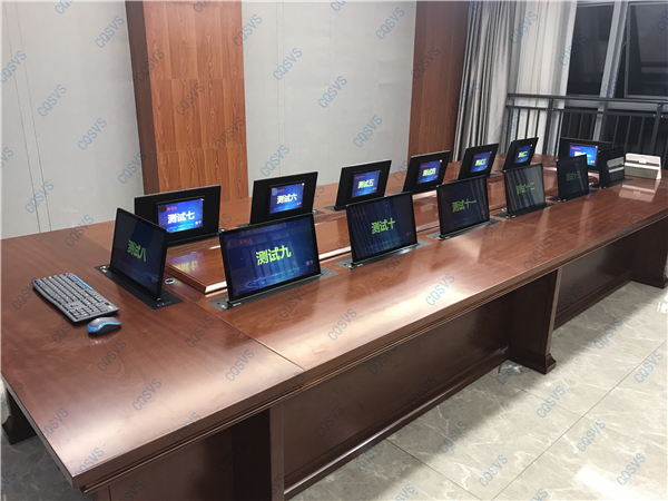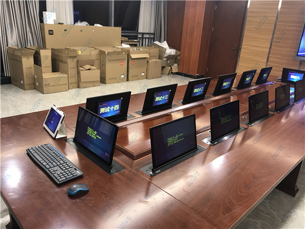 此次重慶迅控電子科技有限公司為某綜保區(qū)打造打造無紙化會議室,會場共設(shè)置14個席位,為每個席位配置了雙屏可觸摸超薄液晶屏升降器SV-LCD17(TD)配合無紙化軟件,實(shí)現(xiàn)眾多會議功能,另外配備海信全場景會議平板顯示設(shè)備、會議擴(kuò)聲及發(fā)言系統(tǒng)、智能中央控制系統(tǒng)等設(shè)備。整體效果獲得現(xiàn)場一致好評。