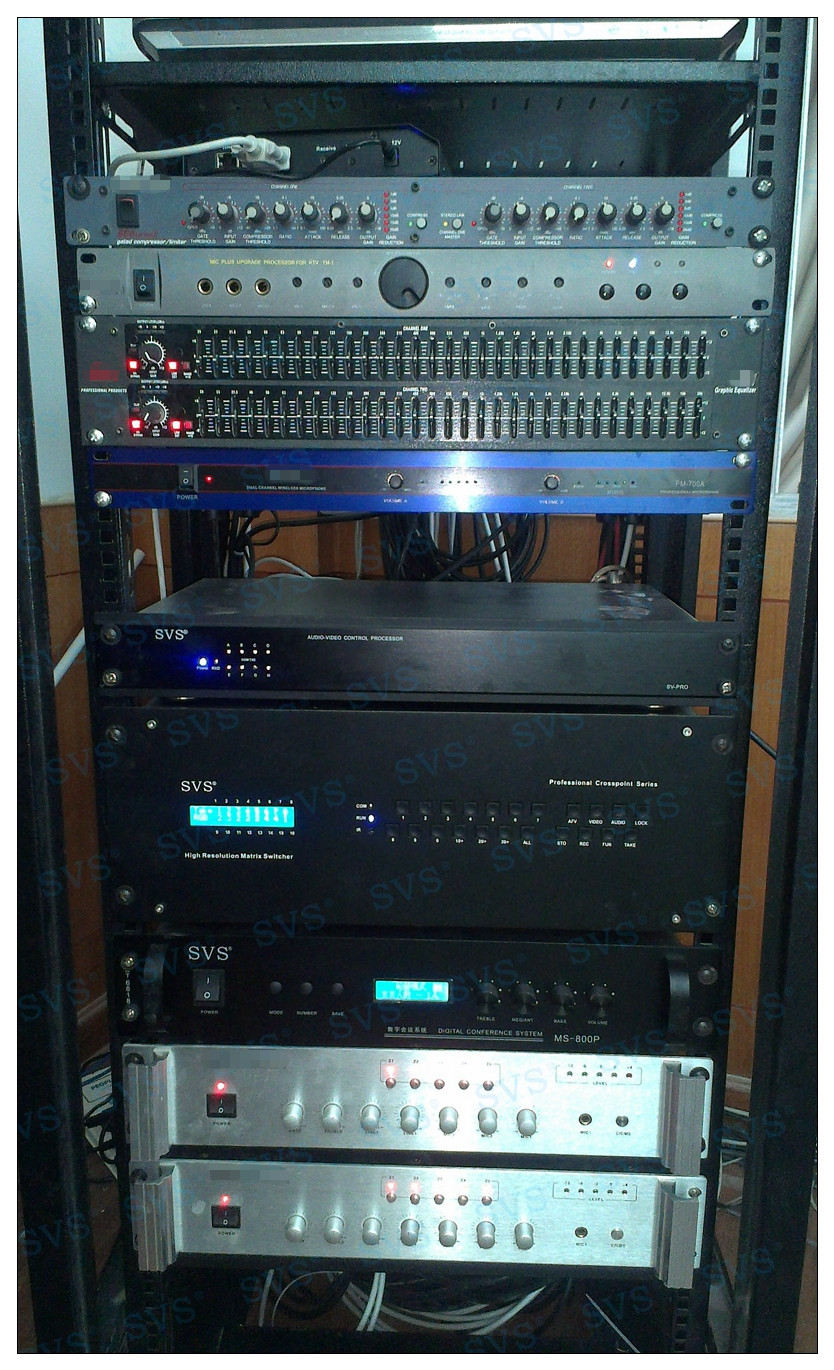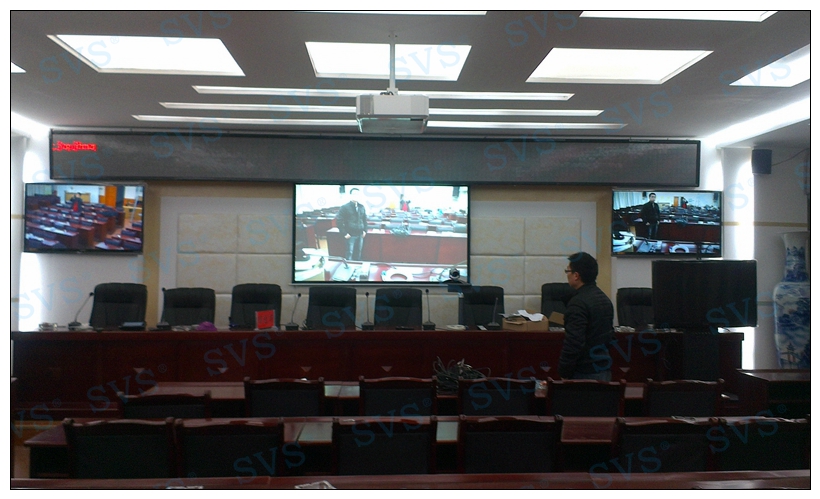 此次迅控SVS為昆明市某局打造一個數(shù)字化會議中心,會場可同時容納近百人進行會議,主席臺設(shè)有八個數(shù)字會議發(fā)言單元,顯示設(shè)備包括一個投影幕、兩個液晶電視,會議發(fā)言跟蹤通過會議主機和矩陣系統(tǒng),輕松實現(xiàn)跟蹤信號靈活顯示,客戶只需通過觸摸屏即可輕松實現(xiàn)信號切換和會場環(huán)境統(tǒng)一管理。