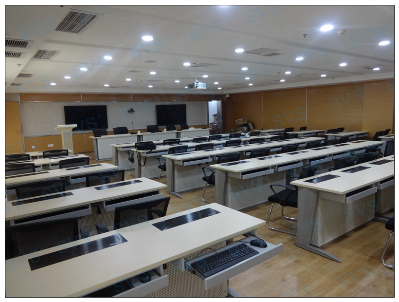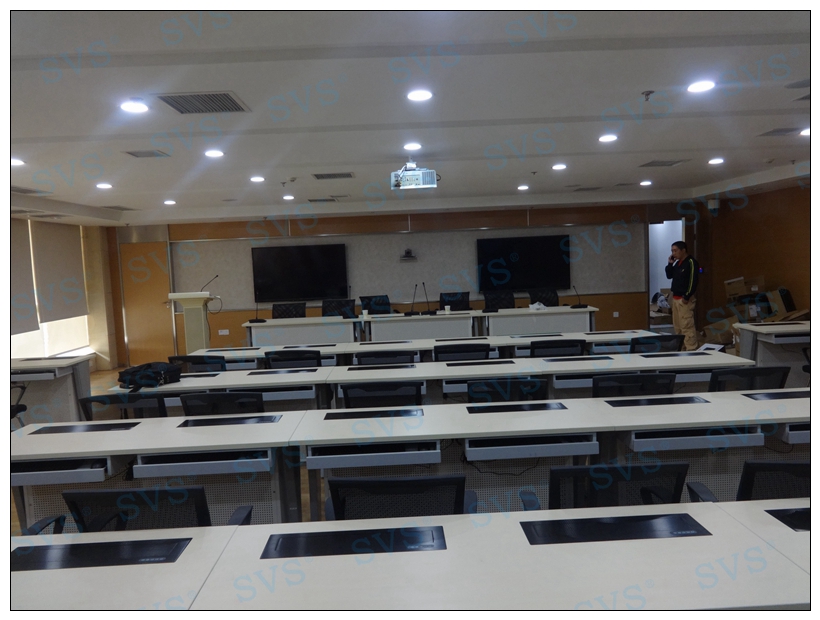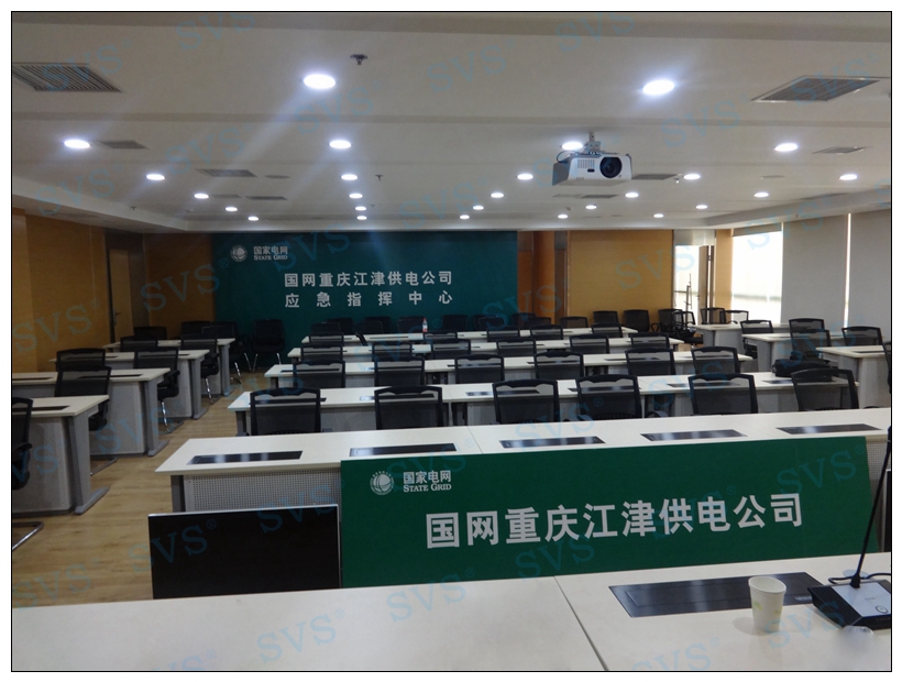 此次迅控為重慶市江津供電公司打造應(yīng)急指揮中心,中心可同時(shí)容納70人進(jìn)行會(huì)議,每個(gè)席位都配有獨(dú)立的桌面顯示隱藏設(shè)備,可在需要時(shí)同步或異步使用顯示器,并智能的控制顯示信號,配合現(xiàn)場的雙投影顯示,構(gòu)成指揮中心多媒體顯示系統(tǒng);通過中央控制系統(tǒng)實(shí)現(xiàn)對整個(gè)會(huì)場的數(shù)字化控制,包括環(huán)境控制、顯示控制、設(shè)備電源控制、會(huì)場聲音控制、會(huì)議模式控制等功能;為用戶打造出一個(gè)數(shù)字化的智能應(yīng)急指揮中心。