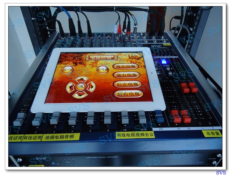 此次SVS為湖北省某縣委員會(huì)打造一個(gè)高檔視頻會(huì)議室,全套多媒體設(shè)備均由SVS設(shè)計(jì)并安裝調(diào)試,包括集中控制系統(tǒng)、信號(hào)矩陣系統(tǒng)、數(shù)字會(huì)議發(fā)言系統(tǒng)、投影顯示系統(tǒng)、會(huì)議擴(kuò)聲系統(tǒng)及會(huì)議輔助系統(tǒng),SVS特為客戶推薦使用時(shí)下最便捷時(shí)尚的平板電腦控制系統(tǒng),配合集中控制系統(tǒng),輕松實(shí)現(xiàn)對整個(gè)會(huì)場的智能化、人性化控制。A、會(huì)議發(fā)言系統(tǒng)1會(huì)議主機(jī)MS-800p2主席單元SV-M218A3代表單元SV-M218B4會(huì)議延長線SV-L105無線話筒MG85806會(huì)議地插SV-8DHB、會(huì)議擴(kuò)聲系統(tǒng)1調(diào)音臺(tái)MX8/4FX2主音箱E-123主音箱功放CS20004輔助音箱E-105輔助音箱功放CS-14006音頻處理器DA2067反饋抑制器FB11808均衡器22319電源時(shí)序器SV-p801C、投影顯示系統(tǒng)1VGA矩陣MS-VGA0808-A2音視頻矩陣MS-AV0808D、集中控制系統(tǒng)1中控主機(jī)SV-pRO2WIFI觸摸屏IpAD3無線接收器WFGW-2004強(qiáng)電控制器SV-Sp85控制軟件SV-App2.0