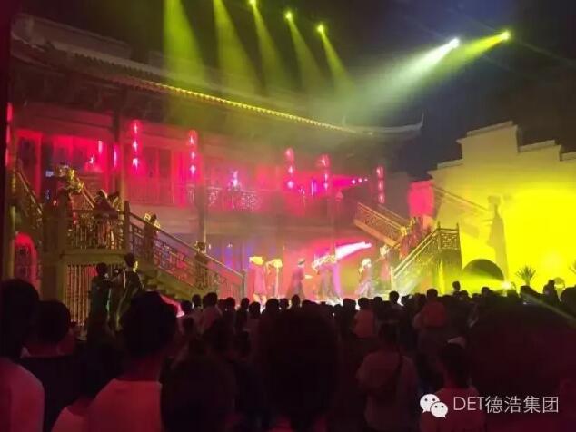 能打造如此盛大的演出場面,全靠擁有國內(nèi)高端的硬件設(shè)施——DET高清高亮激光工程投影機(jī)助陣。本次《夢歸平越》舞臺效果的功臣,是由66臺DET-SWU1完成,所有投影機(jī)均采用吊架安裝。其中海洋12組24臺,城墻5組10臺,入口地面10組20臺,小橋1組2臺,控制室6臺,4臺打主屏。