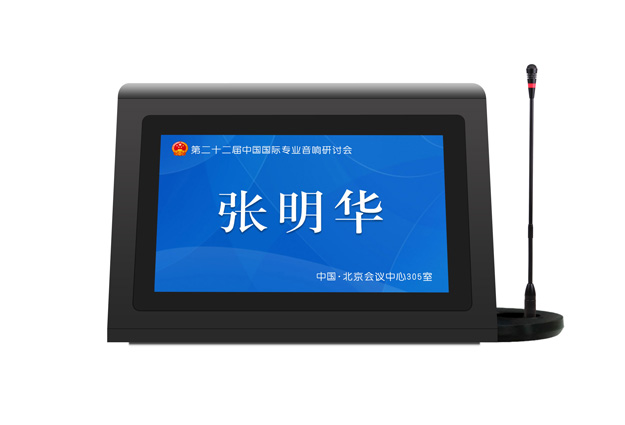 ? 產(chǎn)品特性:全鋁外殼,帶攝像機(jī),帶發(fā)言話筒,網(wǎng)線(POE)供電,數(shù)據(jù)信息無(wú)線(wifi)接收,雙面電子桌牌,可一面顯示單位名、人名、職位。能在屏幕上直接書(shū)寫(xiě)人名,職位即可在屏幕上顯示。另一面能顯示部分會(huì)議終端的內(nèi)容如會(huì)議議程,呼叫服務(wù),會(huì)議通知,等等。