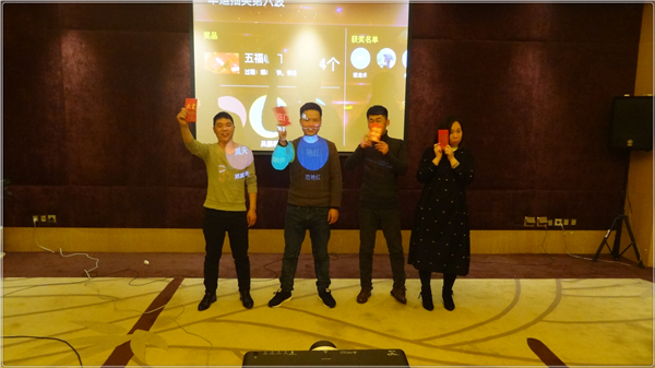 當(dāng)然,最讓全場氣氛高昂的還是幸運抽獎環(huán)節(jié),為了回饋大家一年來的努力和付出,今年公司精心準備了“一帆風(fēng)順”“兩全其美”“五福臨門”“八方來財”等紅包獎項,為大家送上真摯的新年祝福,在一撥一撥歡呼聲中將公司年會晚宴推向高潮。