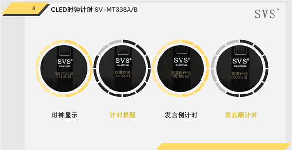 單元帶OLED時(shí)鐘顯示,并具有發(fā)言計(jì)時(shí)和發(fā)言倒計(jì)時(shí)功能;