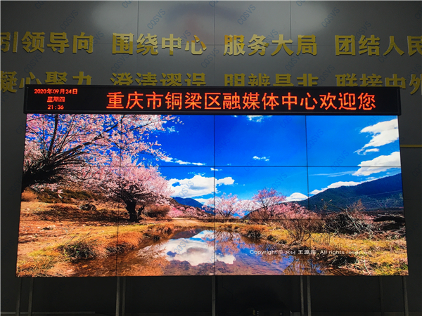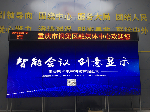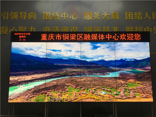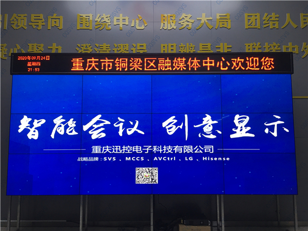 本次重慶迅控電子科技有限公司為重慶市銅梁區(qū)融媒體中心打造大屏顯示墻,采用海信55寸1.8mm超窄液晶拼接單元通過3X4拼接的方式進行實施。海信55寸1.8mm拼接單元采用LG工業(yè)級液晶A+原裝面板,亮度分布均勻,顯示畫面高清自然不失真;可視角度達178°,視野更開闊;用戶在觀看過程中能得到更佳的視覺體驗。畫面輸出更穩(wěn)定的同時,視覺效果更加清晰完美。