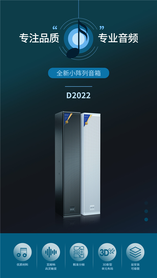 D2022是一款緊湊型大功率的線性陣列音箱,采用4個4.5英寸的全頻單元和2個3英寸高音單元、內(nèi)置高精度分頻器和高端樺木板材組成;該音箱單元采用3D新型安裝方式,非傳統(tǒng)的簡單平面布置措施,保證了不同的單元聲音輸出聲波不疊加能量,讓發(fā)出的聲音更加清晰,有效聲場范圍更廣,也避免了聲波能量抵消,自然達到高保真音質(zhì)和高還原度的效果。因為體積小、功率大,可級聯(lián)疊加和易安裝等特點,被廣泛應(yīng)用于高端會議室、影院、報告廳和禮堂等場合。