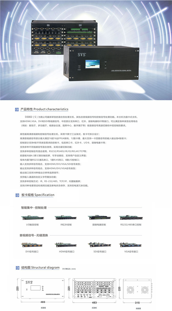 高性能高清音視頻和控制信號處理主機(jī),采用19英寸工業(yè)架式,板卡可拆分設(shè)計;
