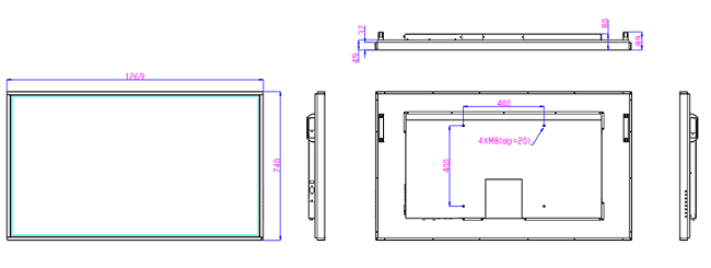 55寸智能會(huì)議平板產(chǎn)品尺寸圖: