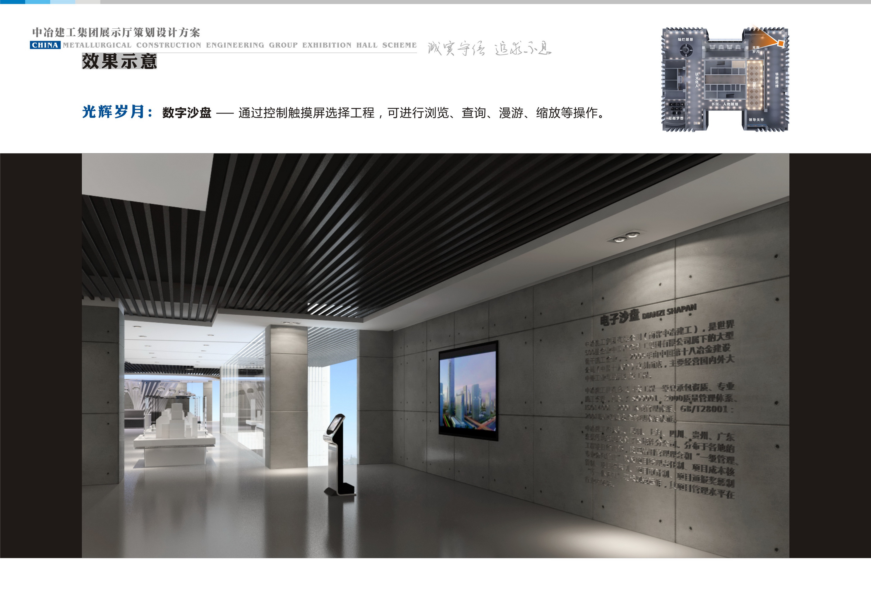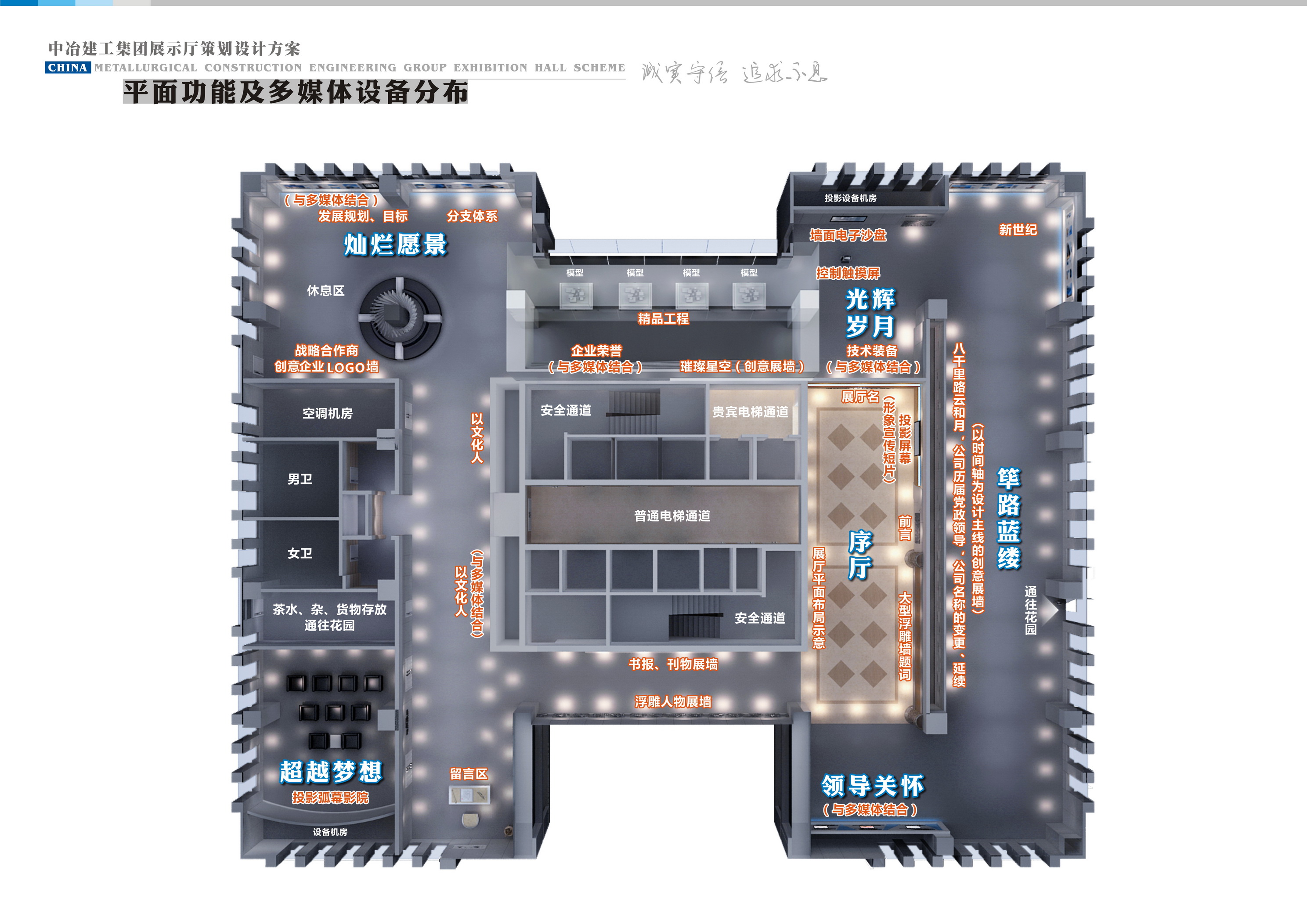 本次我公司根據(jù)中冶建工做針對(duì)性設(shè)計(jì)和實(shí)現(xiàn),采用背景擴(kuò)聲系統(tǒng),大屏幕融合顯示,集中控制系統(tǒng)等數(shù)字互動(dòng)的方式展示企業(yè)形象、領(lǐng)導(dǎo)關(guān)懷、篳路藍(lán)縷、光輝歲月、精品工程、燦爛愿景、企業(yè)文化、超越夢(mèng)想,得到使用方一致好評(píng);